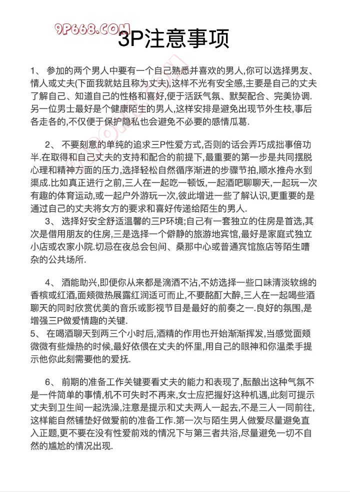 如你喜欢多人运动,不管是3p还是多p,还是交换,不管是0经验,还是咨深玩家,都可以提供一站式服务,帮助你筛选高素质单男,选择五星以上酒店,HIV,HPV体检,活动期间单男手机全部上交,经得女生同意后,本人方可拍不露脸照片用于活动发帖,发布前也会经女生确认,严格保护对方隐私心